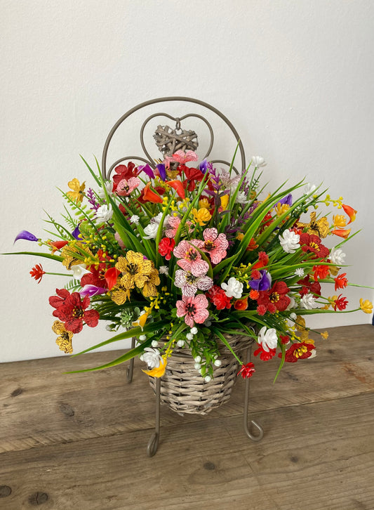 Floral Rattan & Metal Chair Plant Pot