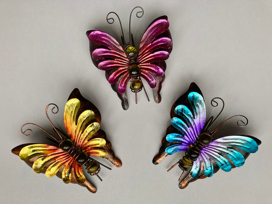 Yellow & Blue Metal Butterfly Wall Plaque