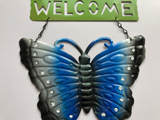 Blue Butterfly Metal Welcome Sign
