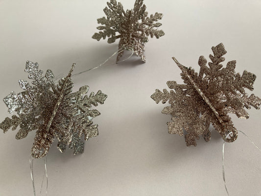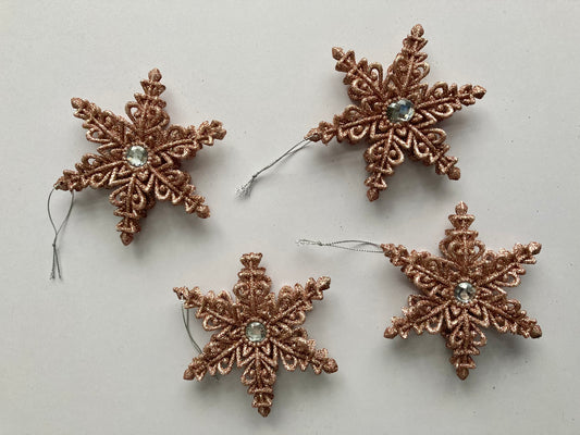 3pk Rose Gold Snowflake Baubles