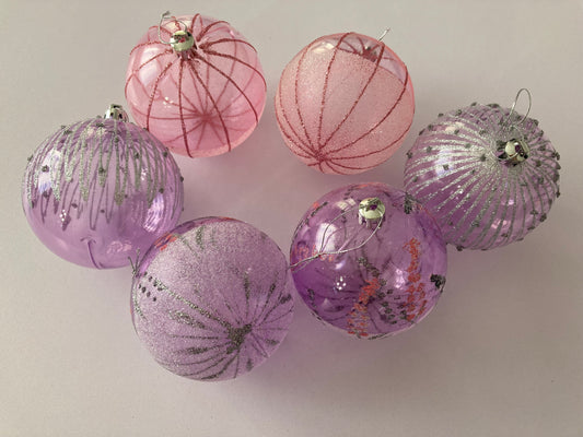 6pck Pink & Purple Christmas Baubles