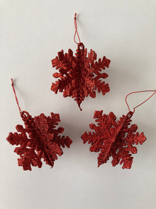 3pck Red Glitter 3D Snowflake Baubles