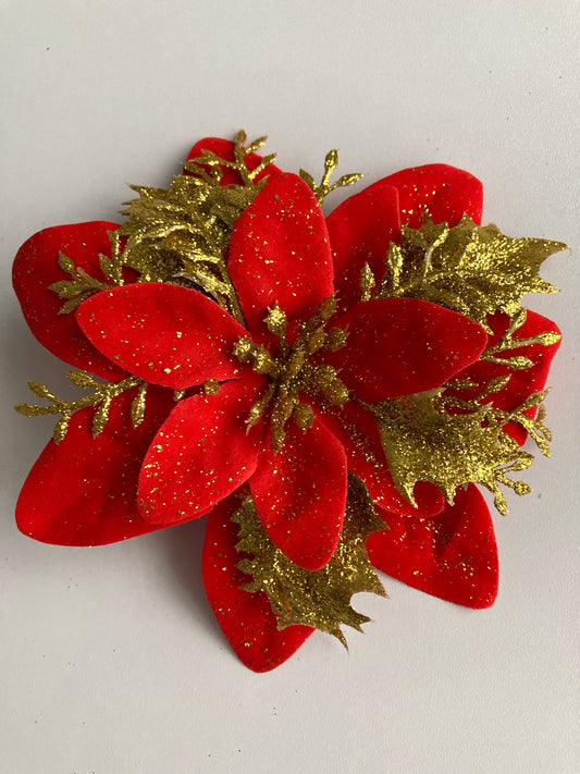 6pk Red & Gold Poinsettia Heads