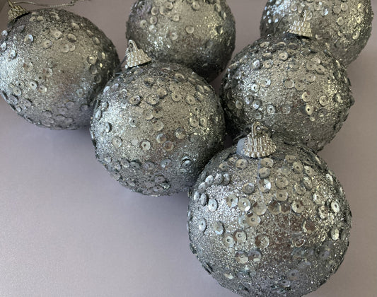 6pk Silver Sequin Christmas Tree Baubles