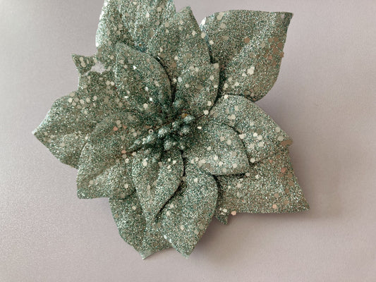 1 Mint Green/Silver Poinsettia Clip Back