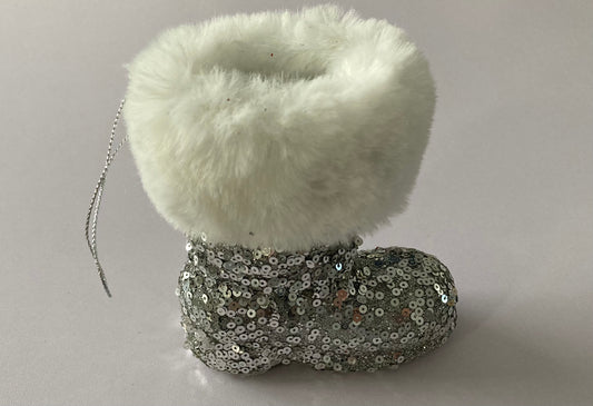 Silver & White Santa Boot Bauble