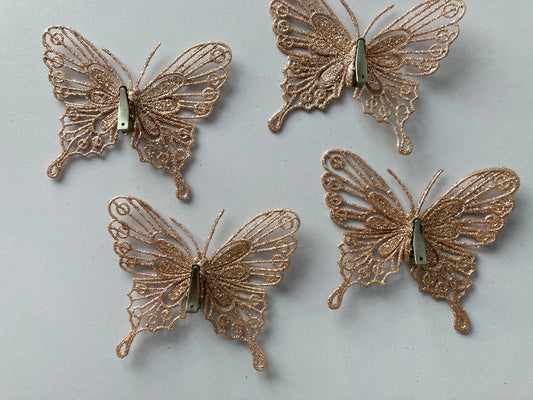 4pk Faux Rose Gold Butterfly Clip Backed
