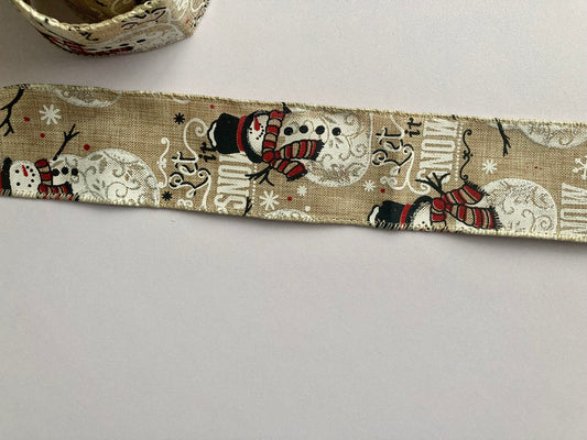 2yrds Snowman Let It Snow Wired Edge Ribbon